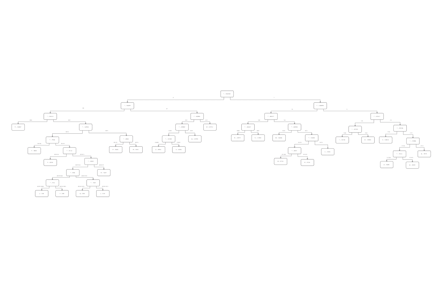 set of frequencies. From the tree, bit-codes for each character are